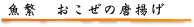 おこぜ カサゴ目 9属30種あまりあり、日本にはその1/3が生息。食べられるのはオニオコゼの一種のみ。背びれに毒をもっているため、刺されると大変腫れるため、英名を「デビルスティンガー(悪魔の棘)」といい、ヨーロッパでは恐れられている。 全長25cmほど。成長が遅く、漁獲サイズになるまでに3年以上かかる。 白身で脂肪が少なく淡白。味は美味で、年中高価で取引される。 活け造り・唐揚げ・煮つけ・味噌汁などに調理して食べる。 漁法は底引き網・さし網。 本州中部以南の海底・浅瀬から200mぐらいの砂泥地に生息。 刺身はもちろん、唐揚げや、煮つけにして食べると美味しい。 体全体が黒々としていて背びれがピンとたっているほうが新鮮。 九州を代表する高級魚。 旬は夏。 |