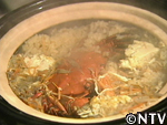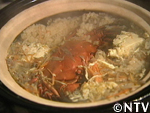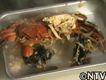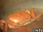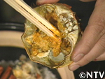 水中にV字型に張った網の先端に「カニ網せん」と呼ばれる金網かごを仕掛ける 定置網漁法で獲る。