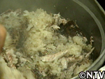 塩さんまは、内臓も捨てることなく、全ての部分をいっしょに炊き込む。炊いた後に取り除いた骨も、昔はから揚げなどにして、おいしく食べられていた。