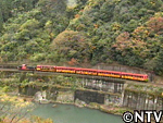 紅葉の下、川を下る達也と太一、するとその紅葉の間からあるものが見えてきた。
