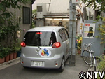 そこで、カーブ途中にあるお店の陳列棚を移動させていただき、車の動けるスペースをなんとかを確保! |