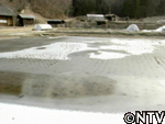 田んぼにはった薄氷はかっこうの遊び場となり、寒さに負けずに男たちがはしゃぎまわる。