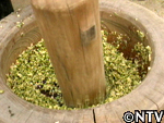 まずはこの10kgの豆を水に浸し、柔らかくなったらそれを全部すり鉢で潰してゆく。水を加えながら潰した緑豆を目の細かい布で漉し、その澱粉が溶け出した水だけを冷暗所に保管しておく。