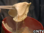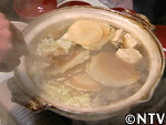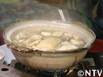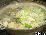 | 食材:南部せんべい 具材:メヌケ・白菜・しめじ・豆腐・ネギ メヌケ 大きさ約60cmの深海魚。 冬に旬をむかえ、かつ脂がのっているので鍋物には最適、静岡県以北で獲れる。 |