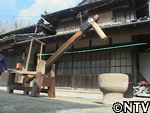 | ガニ漁 『カニ篭』といわれるものを川底に仕掛ける。 カニ篭の中に鮎やアジなどのぶつ切りを入れて2〜3日仕掛けておき、かごをあげると蟹が入っているという仕組み。 かご自体は、蟹が一度が入ると出てこれない仕組みになっている。 台唐(ダイガラ) 現在もお正月の餅や、蟹をつく時に用いられている。 江戸時代中期から、米や麦を精米するときに使われていた民具。唐臼(からうす)とも呼ばれている。軸の片方に台がすえてあり、その上に乗った人が片足を軸にて踏み込むことで、杵をうごかして、米や麦をつく。 |