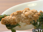 | 食材:モクズガニ 具材:餅・高菜・しめじ・舞茸等 1,蟹(5杯)を生きたまま臼にいれそのまま潰す。 2,潰した蟹をこす。雄と雌が半分ずつに混じっていると、真子(しんこ)と呼ばれる蟹の卵と身が混じりあい固まりやすくなる。 |