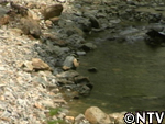 川底には大きな石ばかりだが、じつはこの石の中に石英と呼ばれる成分が含まれていると、それと一緒に金も精製されている場合があるのだという。 |