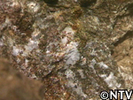 洞窟の入り口から50メートル。岩盤に白い層を発見。だがよく見ればその細かい粒子は赤く輝いているように見えた。どうやらこれはざくろ石、つまりガーネットの層らしいと知った2人は、ここで一旦洞窟を出て、このガーネットの層が続く洞窟の反対側の斜面へと向かうことにした。