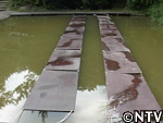 しかし、焦りすぎたか復路でバランスを崩した岩本は池へ落下…1本目は北斗さんの勝利。
