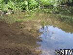 本来なら調整池から田んぼに水を流し込むが、猛暑の影響で調整池の水位が田んぼより低くなり、水が入れられない。