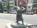 力士の銅像や手形といった、相撲にまつわるものでいっぱいの両国の街。