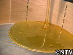 巣を壊さずに遠心分離機にかけ、取れたハチミツはひとつ1リットルのビン3つ分!