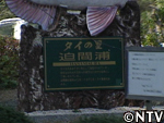 目線の先には大きな鯛の看板!このあたりは鯛の漁獲で有名なのか?