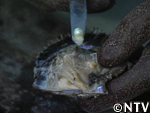 アコヤガイに刃を入れ、貝を開いて真珠を取り出していく!