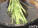 はじめに温湯除雄法という方法のもと、43度のお湯に出穂している穂ごと7分漬け込む。これで、男米の雄しべだけが死に、雌しべが生き残る。 |