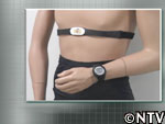 今回カロリー消費の計測を行うのは、胸に付けた機械。