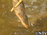 実際に目を光らせる魚の正体に驚きを隠せない城島と達也。 |