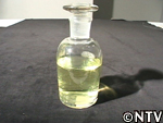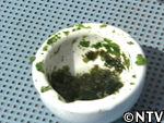 達也が乳鉢ですり潰して、塩酸で溶かしたアオサに、秘密道具・黄血塩を入れてみる。