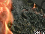 そして、次の作業では、乾燥した材料を燃やして、たんぱく質や脂肪などの有機物を飛ばしてゆく。