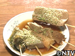静岡おでんは何度も注ぎ足してできた黒いダシ汁と、タネにダシ粉と青海苔をかけて食べるというのが特徴。 |