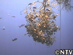 しばらく船で移動すると、浮きに仕掛けてある木を発見。