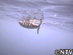 と模型に寄ってきたカマスサワラを突きん棒で一突きし、あっという間に体長1メートルはあろうかというカマスサワラを獲ることに成功した。 |