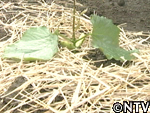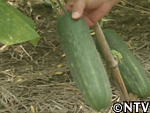 と自ら育てた特大きゅうりの味に大満足の達也。 |