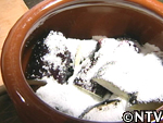 一般的な福神漬けには入っていない、ニガウリ、人参、ごぼうを、色移りを防ぐのと野菜の硬さが違うことを考慮し、それぞれ別の瓶へ入れ、これで7つの「福」が揃った。 |