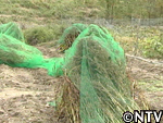 稲の要領でエゴマを刈り取っていき、それをまとめて、最後に鳥に実を食べられないようにネットにかけていく。 |