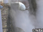 早速何か名物はないかと歩いていると、パイプから出ている蒸気を使って、赤飯を炊いている人に出会う。 |