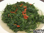 クコの実と一緒に炒められたウマゴヤシはさっぱりした味わいでおいしく、肥満防止にも最適!