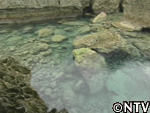 そこは珊瑚に囲まれた浅い海。ギーザバンタ(慶座絶壁)のイノーと呼ばれ、干潮時には大小10ほどの小さな水溜りができる。深いところだと5mほどあり、飛び込みができる岩やトンネルになっているところもある。 |