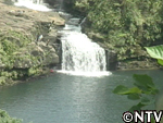 マングローブに囲まれた浦内川をさかのぼり、着いた先には落差15メートルもある大きな滝が。饒平名さんが言うには、子供のころはよく滝の上から飛び込んで遊んでいたとのこと。 |