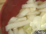 すましは湯に味噌を大量に入れて、布でこしてつくられる。そして、「はっと」と呼ばれる、小麦粉の麺に、このすましの出汁をダシと混ぜてかけて頂く。果たしてその味は!?