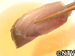 柿を一年以上発酵・熟成させてつくられる柿酢。達也も酢をつくる作業のお手伝いをし、訪ねた蔵人の方の好意で搾り立てのものを刺身につけて頂く!