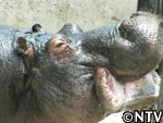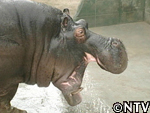 そこで、ホースを使い、カバに水を浴びせてあげると…