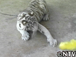 ネコ科といえど、そこはやっぱりトラ。その素早い動きに恐れてしまう城島。 |