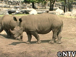 視力が弱いシロサイは、発達した嗅覚と聴覚で相手を確認するという。 |