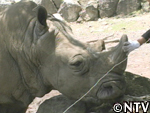 シロサイの角は伸び続けるため、岩や木で研いで、自分で長さを調整しているとのこと。