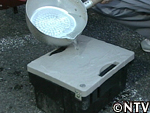 頂いたお湯をバッテリーに直接かけ、アクセルを回してみる。すると見事走り出した! |