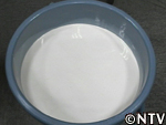 ゴム樹液(ラテックス液)からゴムを作るには、酸を加えてゴムの成分を抽出する。