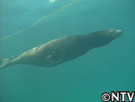 そして、同じ動物、今度はアシカのダイちゃんと泳ぎの得意な松岡が対決。時速40kmで泳ぐアシカに前半リードされた松岡だが、ターンでエサをねだるダイちゃんを逆転し、見事勝利をおさめることができた!勝利のカギはエサでつられない事だった。 |