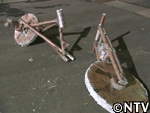 車輪からサドルまで全て新聞紙で作ったパーツを新聞紙粘土でつないで見事完成。いざ、乗車!城島が乗り、達也が押すと、城島の体重を支えきれずグシャッと潰れてしまった。一応1.5mは走りました。 |