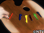 荒俣美術館館長から見つけるように命じられたのは、東洲斎写楽が描いた「市川蝦蔵」の絵にも使われている、黄、黒、白、そして、聖書にも使われている紫。計4色を2人で手分けして探していく。 |