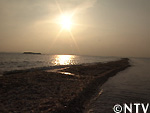 干潮時に現れる貝殻で出来た島。何十年も手を付けていないとのことなので、ここなら貝殻を採ることができる。
