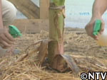 そこで、城島の発案により、いつも使う木酢液に唐辛子を加え、唐辛子木酢液をバナナに吹きかけることに。