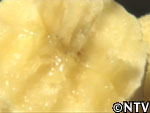 のこぎりで房を丁寧に切り出し、バナナの皮をむいてみると、
