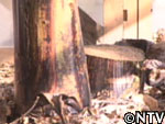 吊るしておいたバナナを外し、4人がかりで担いで縁側に運ぶ。 |