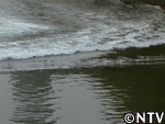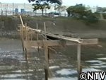 船で引き波を起こし、実験してみると、杭で立てた板は波のうねりの力ですぐに抜けてしまう。