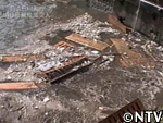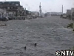 さらに、狭い事で反射波が発生し、ぶつかって反射しあった波同士によりかなり複雑な水流となって、DASH海岸を襲った。 |